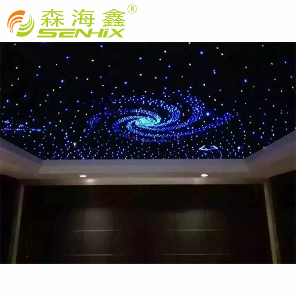 光纤星空是一种新型的灯光系统,它是一个崭新的概念,可以在你的房间中呈现一个星空的效果,并真是的存在各种的星座,甚至可以模拟流星的出现,真实的再造一个繁星点点的夜空,在大气污染的都市再现久违的儿时夜空。它的存在是通过无数不同直径的光纤按照星图的位置安插在天花板中,再使用LED光纤机带动,可以忽明忽暗、不同颜色交替出现,时而一道流星雨滑过夜空。。。。